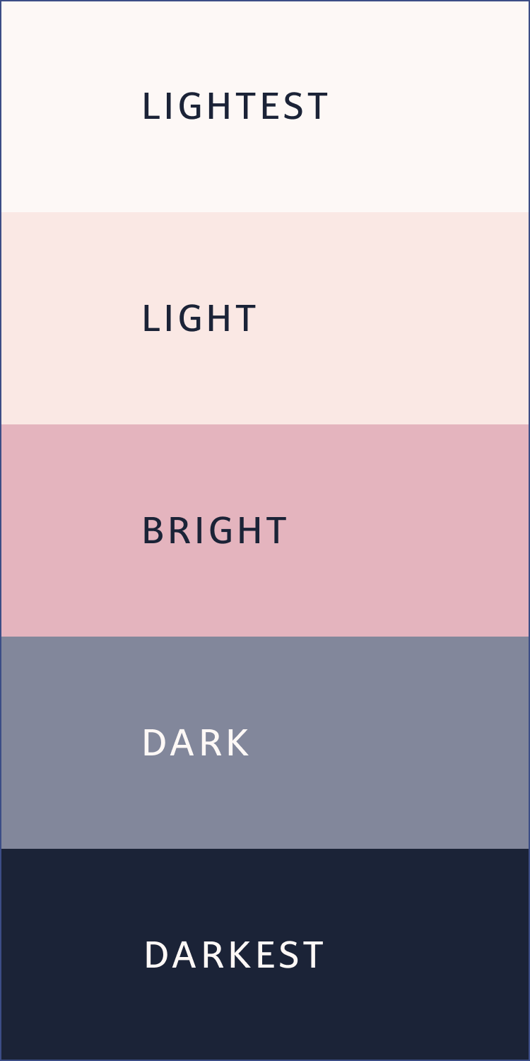 This can be a darker colour, often used for backgrounds. However, it doesn’t have to be dark if you prefer lighter, brighter colours - it should just be darker relative to your other colours.Darkest